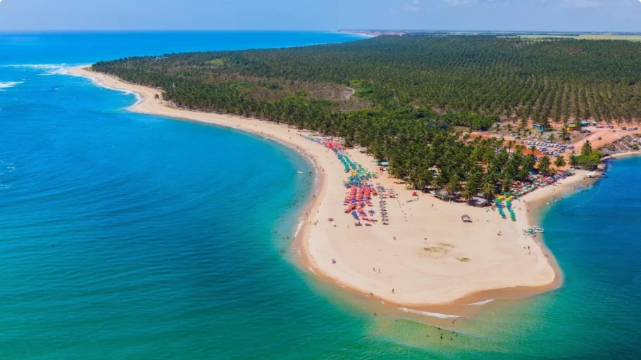 A Praia do Gunga é um dos cartões-postais mais famosos de Alagoas, conhecida pelo encontro do mar com a Lagoa do Roteiro e pelas falésias coloridas que completam o cenário.